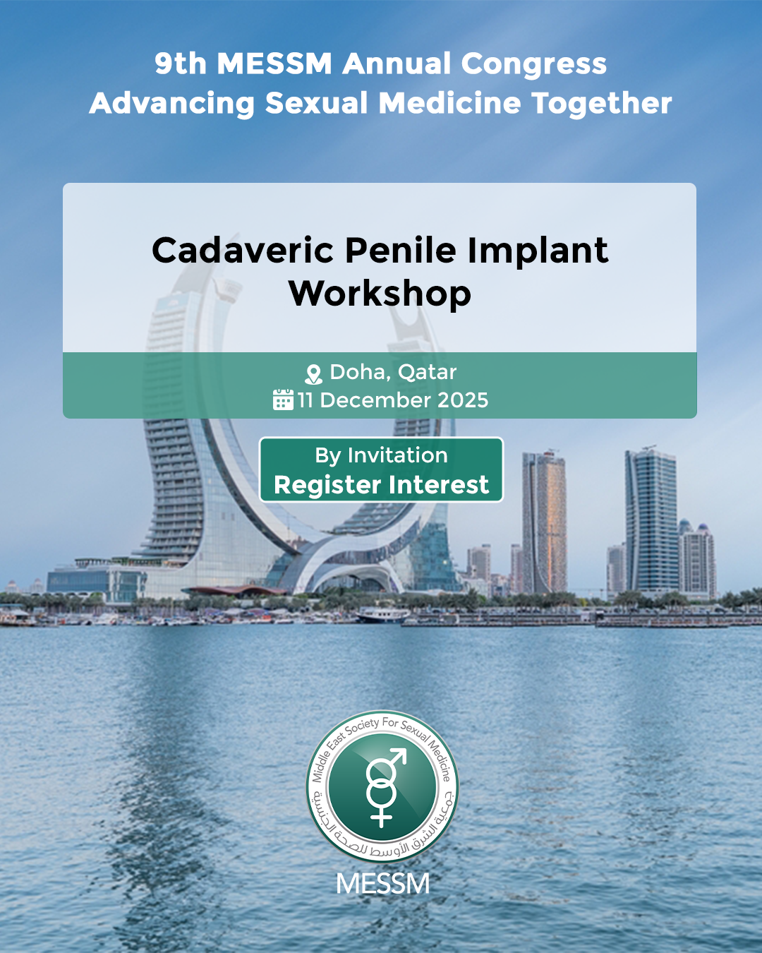 Join the MESSM Cadaveric Penile Implant Surgery Workshop! 📅 11 December 2025 | 📍 Doha, Qatar ✨ Gain expert insights and hands-on experience in penile implant surgery